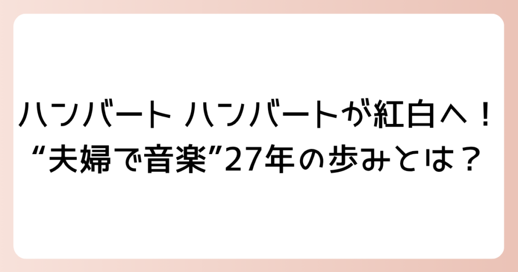 紅白初出場が話題に!朝ドラ主題歌で広がる注目度 2025年11月14日、NHKが年末恒例の「第76回紅白歌合戦」の出場者を発表しました。その中でもひときわ注目を集めたのが、フォークデュオ・ハンバート ハンバートの初出場決定というニュースです。 結成から... -