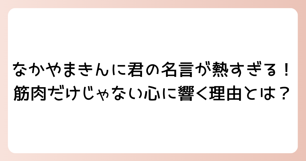 今日の自分は、その“筋肉”をちゃんと大事にできたか? 少しだけ考えてみると、きんに君さんの言葉が、じわっと心に効いてくるかもしれません。