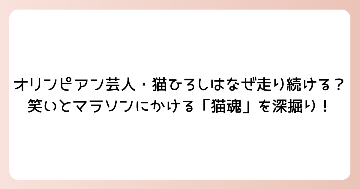 東京マラソンで毎年のように2時間台を叩き出しながら、テレビでは全力の「ニャー!」で笑わせてくれるお笑い芸人・猫ひろしさん。