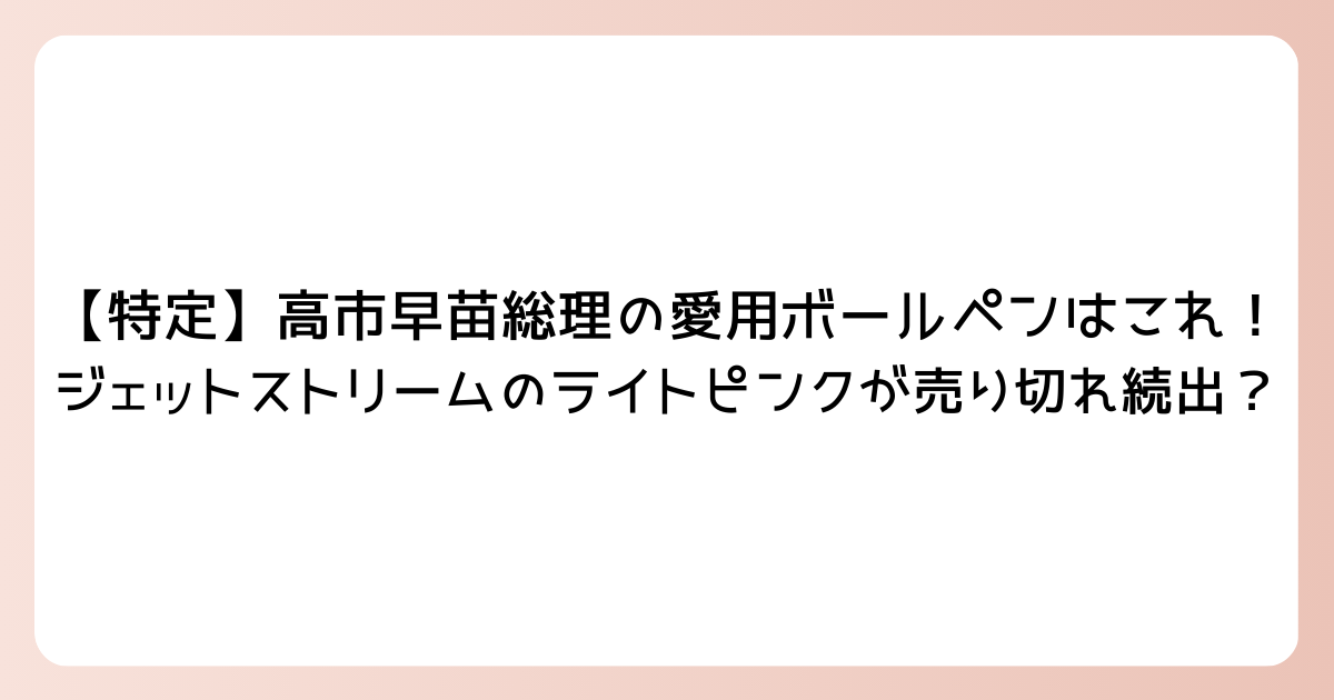 【特定】高市早苗総理の愛用ボールペンはこれ!ジェットストリームのライトピンクが売り切れ続出?